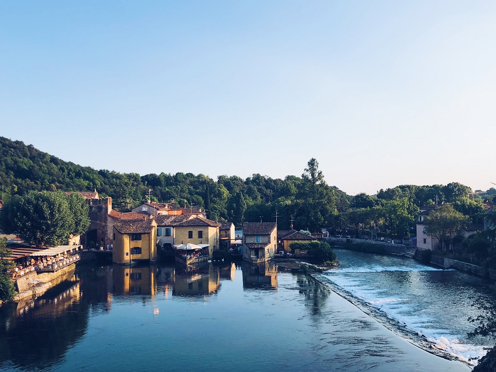 Aber eigentlich ging es nach Valeggio – bisher noch nicht davon gehört? Dann unbedingt merken! Die Festa del nodo d’amore ist ein kulinarisches jährliches Highlight, das Tausende von Besuchern anlockt. Die Atmosphäre und Kulisse dieses Festes sind einmalig: die mittelalterliche Visconti-Brücke verwandelt sich an einem Abend zu einem riesigen Freiluft-Restaurant, das auf 600 Meter langen Tischen selbstgemachte Tortellini und leckere Beilagen anbietet. Dazu kann man sich einen historischen Umzug anschauen und zum krönenden Abschluss gibt es ein Feuerwerk vor der Skaligerburg.